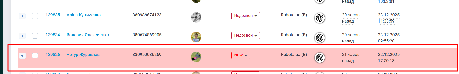 Робочий день вважається завершеним лише за умови, що в CRM-системі відсутні ліди зі статусами “NEW” та “червоні”.